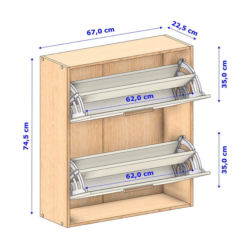 Sapateira Lara – Organização Inteligente com Design Modular e Sofisticado A Sapateira Lara é o móvel ideal para quem valoriza praticidade, estilo e versatilidade. Com um design moderno e acabamento refinado, ela foi criada para trazer mais funcionalidade ao seu dia a dia e se adaptar perfeitamente a diferentes ambientes — seja no quarto, no hall de entrada, no closet ou até na lavanderia. Produzida em MDP de alta qualidade, a Sapateira Lara é resistente, durável e fácil de limpar. Seus puxadores em MDF revestido oferecem um toque amadeirado elegante, e as sapatas na base elevam o móvel do chão, protegendo contra umidade e facilitando a limpeza do ambiente. Medidas Totais: - Altura: 74,5 cm - Largura: 67 cm - Profundidade: 22,5 cm - Largura útil interna: 62 cm - Altura útil de cada compartimento: 35 cm Materiais e Estrutura - Estrutura: MDP de alta resistência. - Puxadores: MDF revestido, com acabamento amadeirado. - Sapatas: Sim, elevam o móvel e evitam contato direto com o chão. - Sistema de abertura: Basculante com estrutura metálica interna, resistente e prática. - Acabamento: pintura de qualidade, fácil de limpar e duradoura. Design Modular – Crie a Composição do Seu Jeito! O grande diferencial da Sapateira Lara está em sua estrutura modular, que permite total liberdade de montagem e personalização. Cada unidade pode ser utilizada individualmente ou combinada com outras, formando composições únicas e sob medida para o seu espaço. Você pode montar: - Empilhada: uma sobre a outra, criando uma torre de sapateiras com visual moderno e aproveitamento vertical. - Lado a lado: ideal para formar um conjunto amplo e contínuo, perfeito para corredores, closets ou quartos. Importante: Para formar módulos empilhados ou conjuntos lado a lado, é necessário adquirir mais de uma unidade da Sapateira Lara. Cada sapateira é vendida separadamente, permitindo que você compre quantas precisar para montar sua composição ideal. Informações Importantes: - Produto entregue desmontado. - Montagem por conta do comprador (acompanha manual e kit de ferragens). - Montagem simples e intuitiva. - Venda unitária — para montar módulos, adquira mais unidades. - Imagens meramente ilustrativas, não acompanha objetos de decoração e sapatos. A Sapateira Lara é mais do que um móvel: é uma solução modular para transformar e organizar seu espaço com elegância. Comece com uma unidade e amplie conforme sua necessidade — componha, empilhe e crie o móvel perfeito para o seu ambiente!