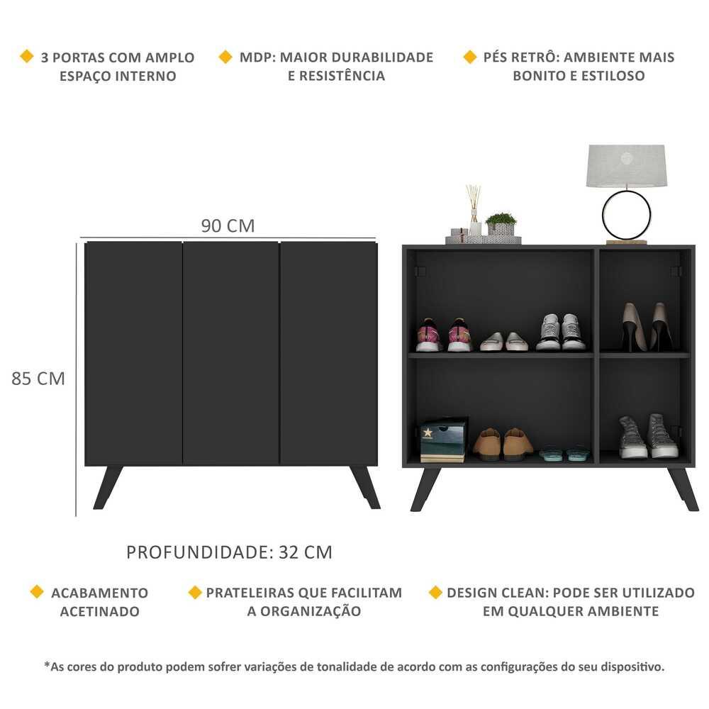 Sapateira Retrô 3 Portas Nina Multimóveis MP6018 Preta