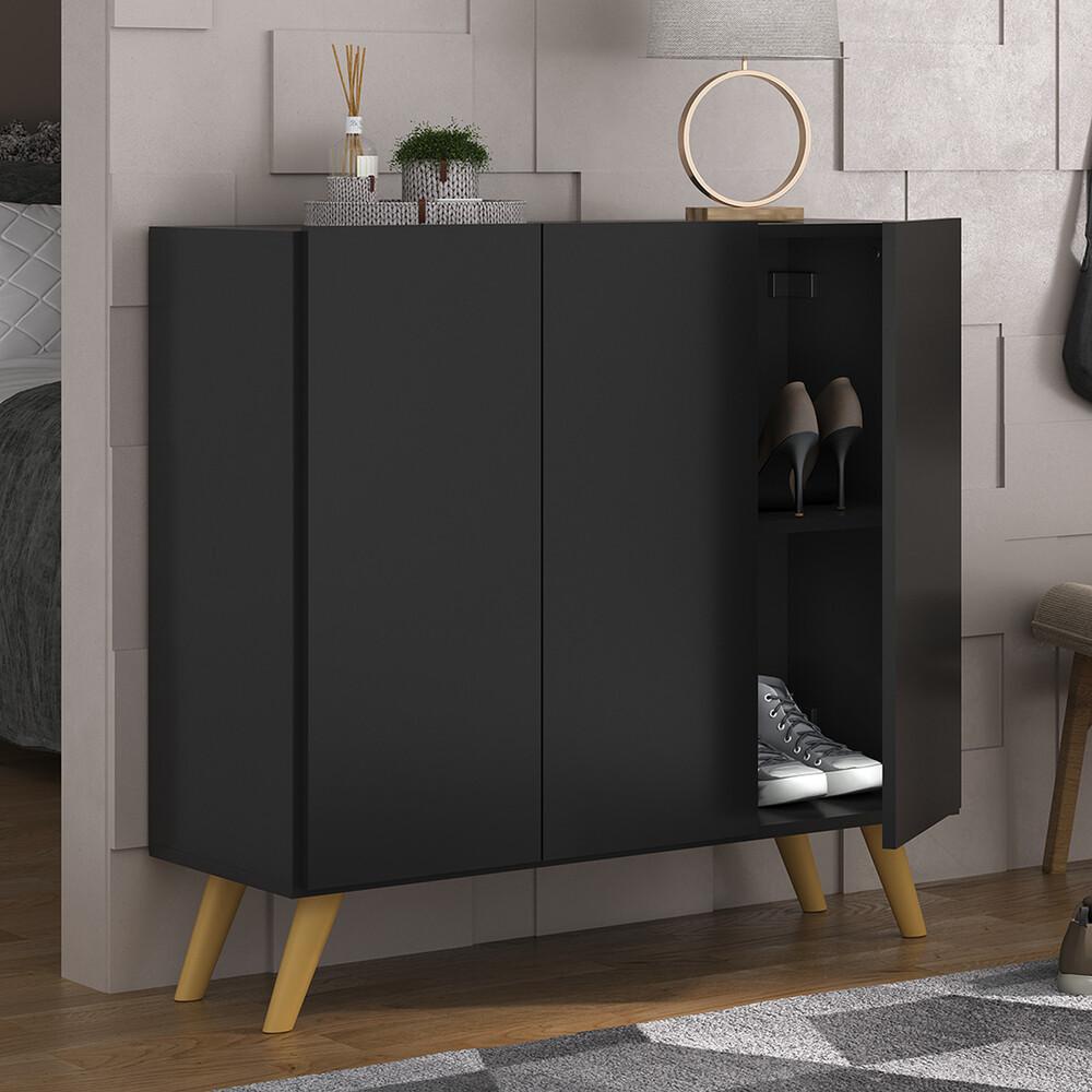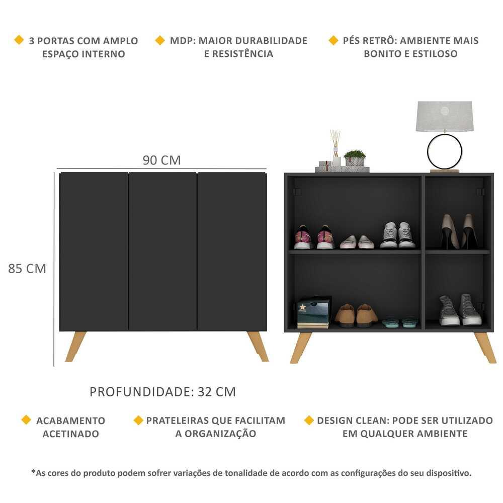 Sapateira Retrô 3 Portas Nina Multimóveis MP6018 Preta/Natural