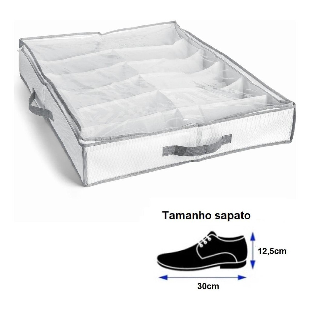 A Sapateira TNT Semiflexível com 12 Divisórias Branca My Closet Ordene é a solução mais fácil e pratica para organizar e proteger seus sapatos. Produzida com TNT de qualidade e com materiais respiráveis, possui capacidade para até 12 pares. É ideal para guardar embaixo da cama ou dentro do armário, economizando espaço em seu dormitório, protegendo seus calçados e facilitando a escolha do que deseja usar. Medidas: 15 x 60 x 75 cm (A x L x C)