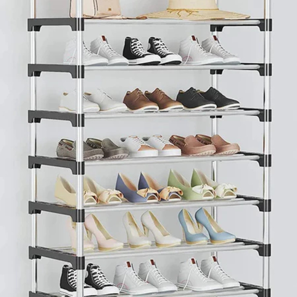 Sapateira Vertical 6-7-8 Prateleiras 18 Pares De Sapatos Calçados Aço Cromado Luxo Desmontável