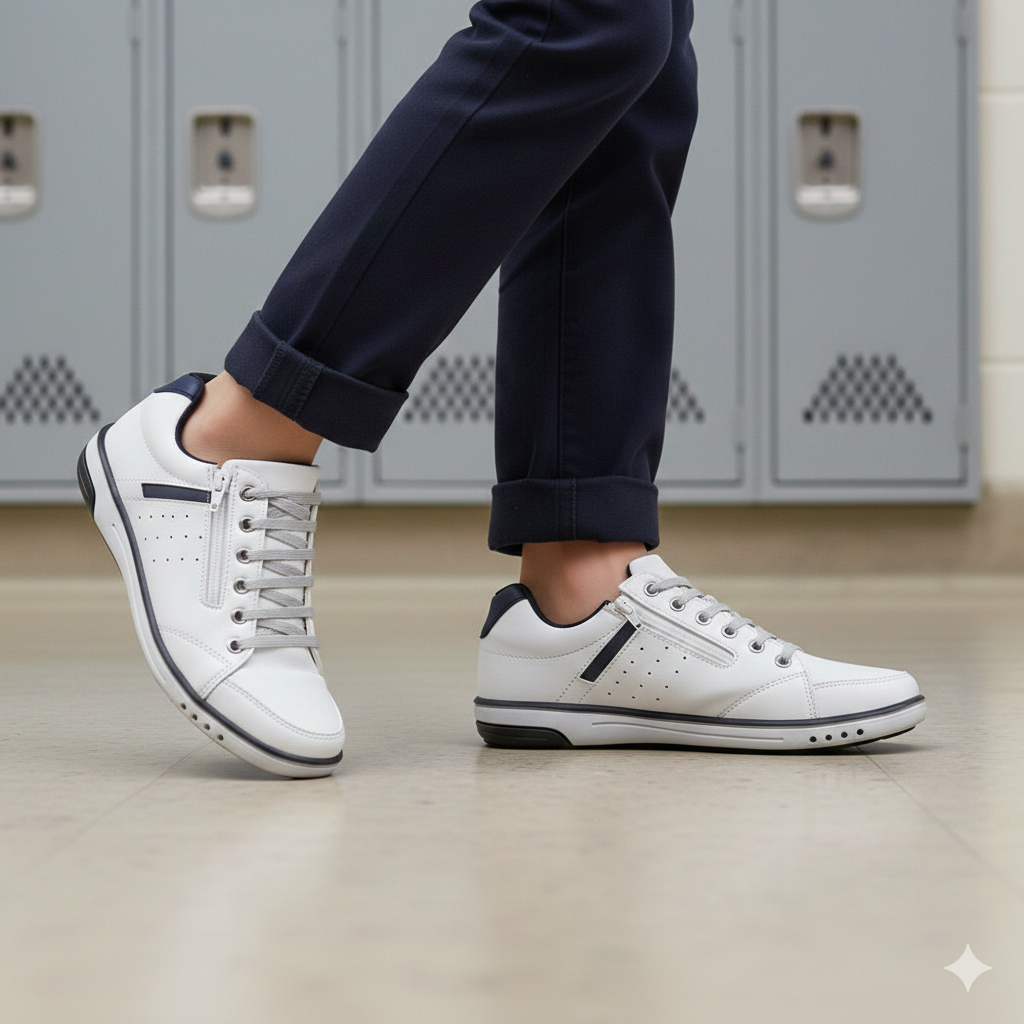 Sapatênis Infantil Star Fox – Conforto, Autonomia e Estilo para o Dia a Dia das Crianças O Sapatênis Infantil Star Fox foi desenvolvido para oferecer o equilíbrio perfeito entre conforto, praticidade e segurança. Pensado para facilitar a rotina das crianças, o modelo conta com fechamento em zíper lateral e ajuste em elástico, permitindo que elas calcem o tênis sozinhas com mais autonomia, confiança e satisfação. Seu cabedal em material vegano e o forro em cacharrel espumado proporcionam maciez, proteção e mantêm os pés na temperatura ideal durante todo o dia. O design versátil conta com opções de cores neutras — preto e café — perfeitas para a escola e para o dia a dia, além de versões coloridas que garantem um visual moderno e descontraído para passeios, festas e momentos de diversão. O solado em TR emborrachado oferece excelente aderência a diferentes tipos de piso, garantindo pisada firme, segurança e estabilidade em cada passo. Combina perfeitamente com bermudas, calça jeans e camisetas básicas, criando looks confortáveis e estilosos para qualquer ocasião. Nossos produtos são fabricados com tecnologia de ponta, passando por rigorosos processos de seleção de materiais, acabamento e testes de resistência. Cada detalhe é pensado para entregar durabilidade, qualidade e conforto, sempre respeitando critérios ambientais e de segurança. Especificações Técnicas Material do Cabedal: Sintético (vegano) Acabamento: Fosco Material Interno: Têxtil (forro em cacharrel espumado) Solado: TR bicolor emborrachado Palmilha: EVA
