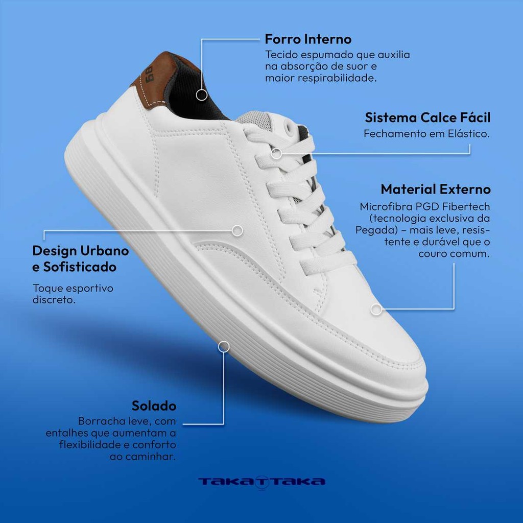Na Taka Taka Calçados, nosso compromisso é proporcionar aos clientes produtos de alta qualidade e 100% originais. Trabalhamos com uma seleção criteriosa de calçados que priorizam conforto, estilo e durabilidade. Todos os nossos produtos acompanham a nota fiscal, garantindo total segurança a sua compra. O Sapatênis Pegada combina visual urbano sofisticado com toque esportivo. Produzido com microfibra PGD Fibertech – tecnologia exclusiva Pegada, mais leve e durável que o couro comum, ele entrega resistência e flexibilidade. O solado em borracha leve com entalhes oferece mais conforto e mobilidade a cada passo. Conta com sistema calce fácil através de elástico, dispensando o uso de cadarços. Internamente, o forro espumado garante excelente respirabilidade e absorção de suor, ideal para a rotina intensa. Características do produto: Modelo: Sapatênis Pegada 172103 Marca: Pegada Categoria: Sapatênis Material: Microfibra fibertech Solado: Borracha Palmilha: Acolchoada Altura do solado: 4cm TABELAS DE MEDIDAS 37- 26,0 CM 38- 27,0 CM 39- 28,0 CM 40- 28,5 CM 41- 29,0 CM 42- 29,5 CM 43- 30,0 CM 44- 30,5 CM OBS: Antes de realizar a compra, por favor, consulte a tabela de medidas disponível neste anúncio. Lá você encontrará dicas simples de como medir o pé e identificar a numeração ideal. Isso garantirá que o calçado escolhido se ajuste perfeitamente ao pé. Evite trocas desnecessárias, verifique as medidas com atenção! A Taka Taka Calçados agradece sua visita e para maiores dúvidas estamos à disposição. Nossos envios são efetuados de segunda a sexta feira, sendo enviado de IMEDIATO após a confirmação da compra.