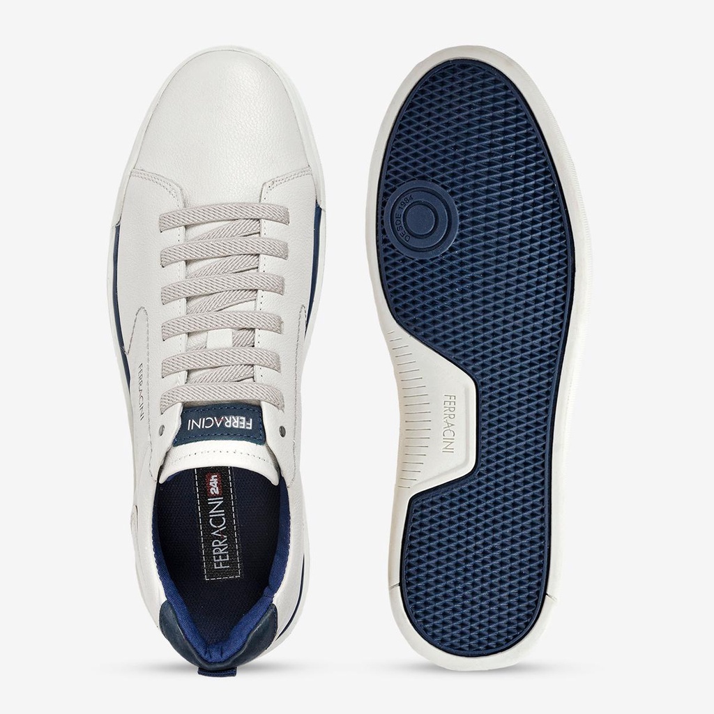 Sapatênis Masculino Couro Ferracini Calce Prático Elástico Esportivo Original Star Branco Azul 1055C