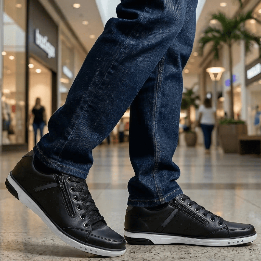 sapatênis Star Fox foi desenvolvido para alinhar o conforto e praticidade. Seu ajuste em elástico gera o encaixe perfeito aos pés e seu fechamento com zíper, facilita o calçar. O cabedal produzido em material vegano e seu forro em cacharrel espumado, que mantem a temperatura ideal para o uso diário. Desenvolvido para o homem moderno que acompanha as principais tendências da moda. Com modelos e cores que combinam com as principais ocasiões. Nas cores preto e café, com um visual mais sério, é a pedida perfeita para alinhar conforto e estilo para o dia a dia no trabalho. Em suas variações coloridas, vai compor o look despojado para curtir aquele happy hour com os amigos ou para aquela noite de balada. Este modelo é perfeito para usar com a sua bermuda preferida ou combinar com uma calça jeans e uma camiseta básica. Nossos produtos são produzidos com a mais alta tecnologia, alinhando qualidade desde a seleção do materiais até o acabamento e testes de resistência e conforto. A matéria prima utilizada passa por um processo de seleção onde são analisados todos os requisitos de resistência, conforto e questões ambientais de sua produção. Para conservar seu sapato o ideal é que limpe com escova, água e sabão neutro. A secagem deve ser realizada a sombra e nunca utilize produtos químicos. Antes de retirar os sapatos, afrouxe os cadarços ou baixe o zíper e nunca utilize os pés para retirá-los.