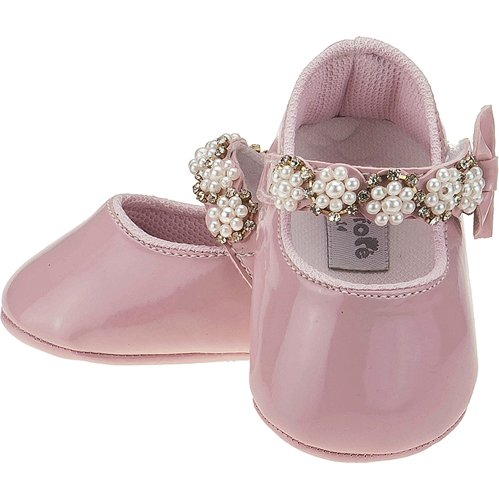 Sapatilha Bebê Menina Luxo Batizado Casamento Festa Pérolas Sapatinho Verniz - Macio 13 ao 17
