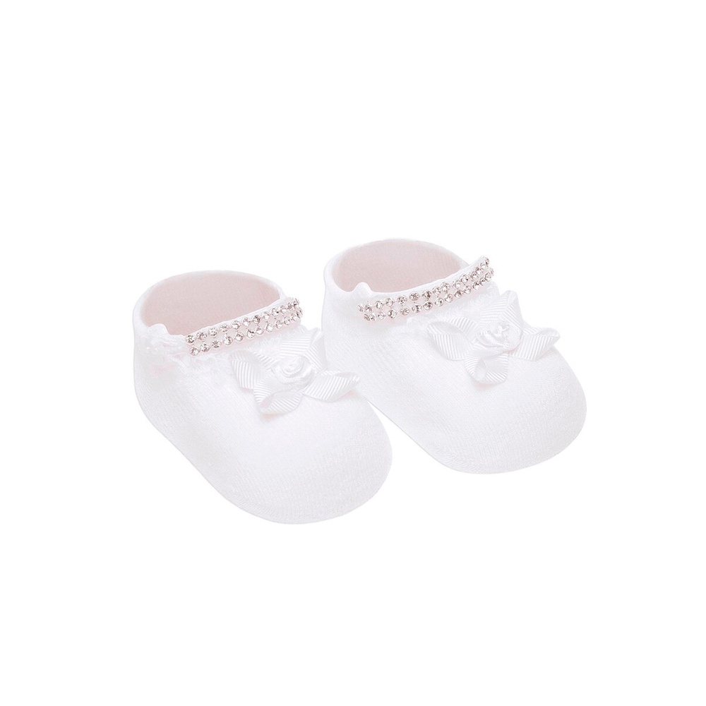 Características: Sapatilha para bebê de 0 a 5 meses. Com aplicação de strass e lacinho. Confeccionada em algodão. Composição: 80% Algodão, 14% Poliamida, 3% Elastano e 3% Outras fibras.