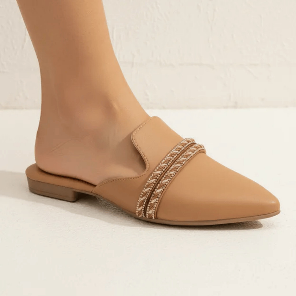 Sapatilha Beira Rio Feminina Mule Bico Fino Tiras Macio Confortável Strass Brilho Original