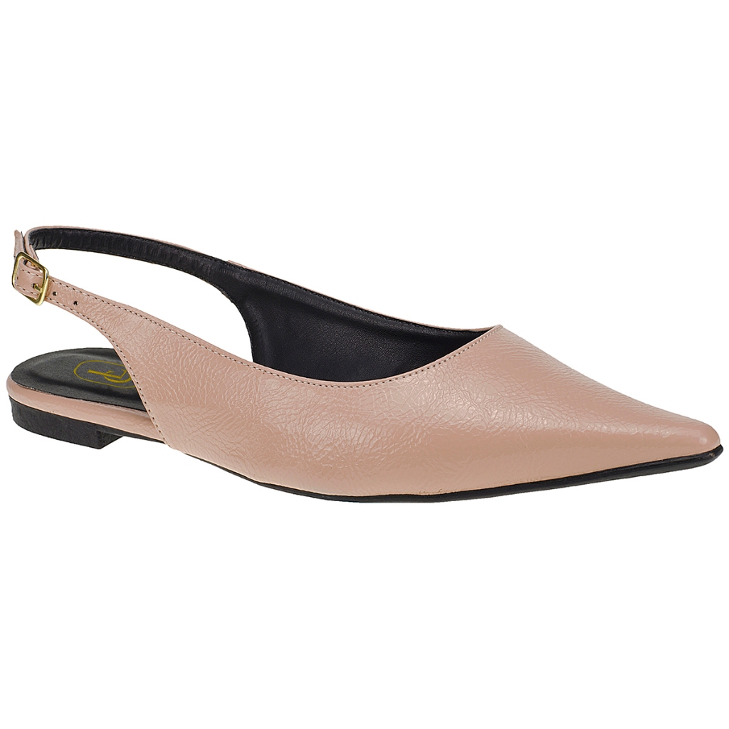 Sapatilha Bico Fino SlingBack com Fivela Verniz Texturizado Confortável Fashion 4130