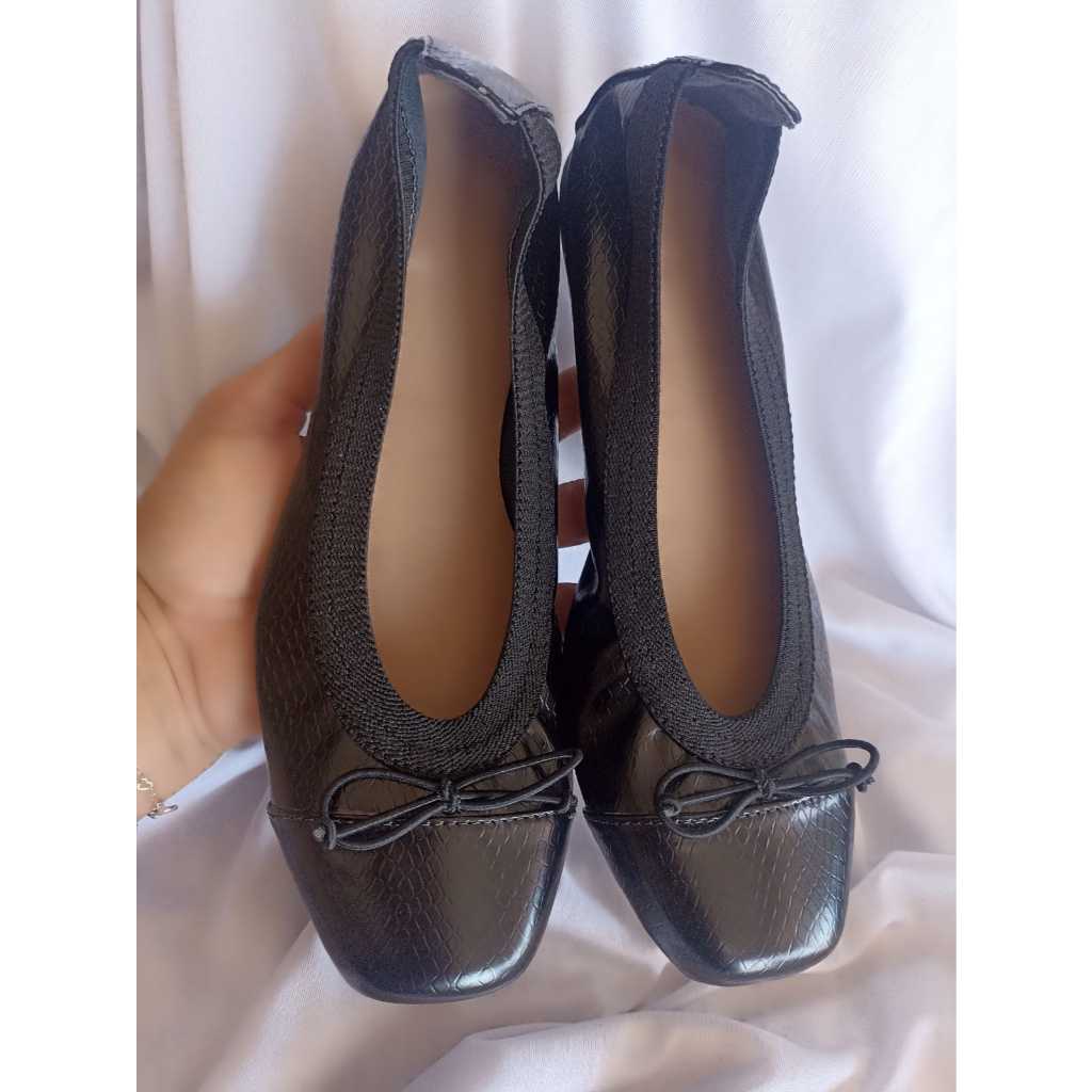 Sapatilha de Bolsa Bico Quadrado Cobra Preto
