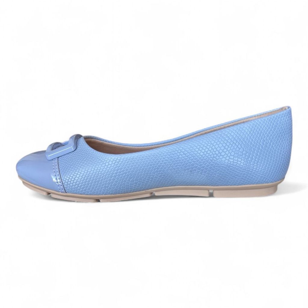 Sapatilha Feminina Azul Bico Redondo com Textura e Verniz Comfortflex 2463422-3