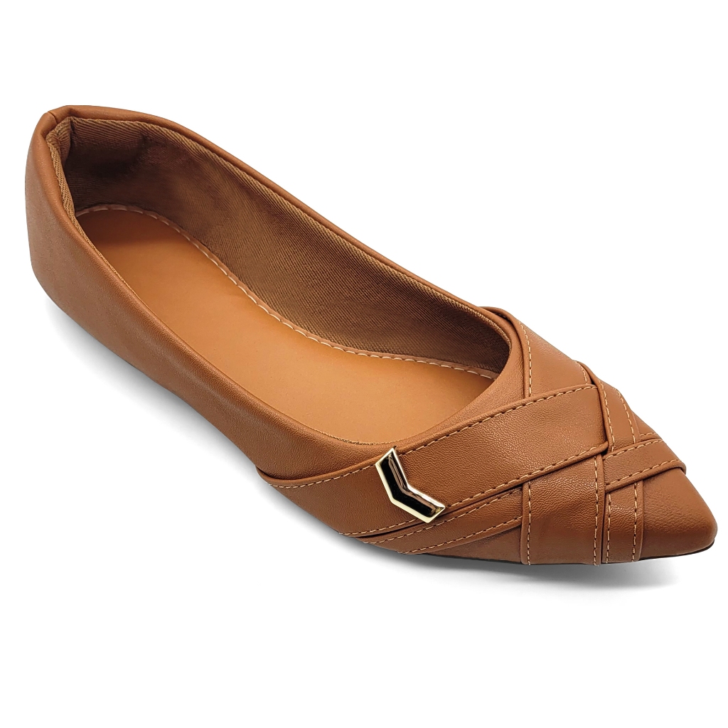 Sapatilha Feminina Bico Fino Casual Confortável Marrom Moda Rasteira Dia a Dia Sandália Feminino