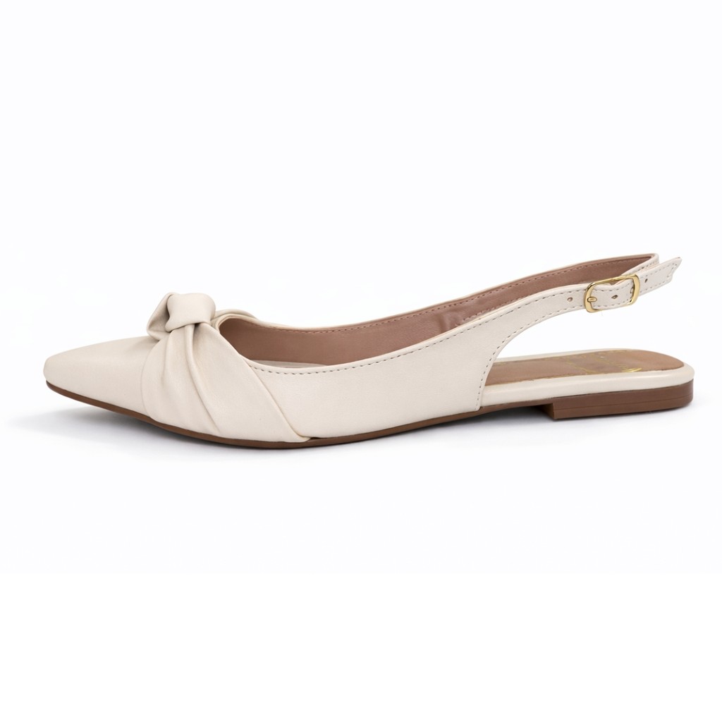 Sapatilha Feminina Bico Fino De Abotoar Slingback Sapato Social Confortável Laço 348-02