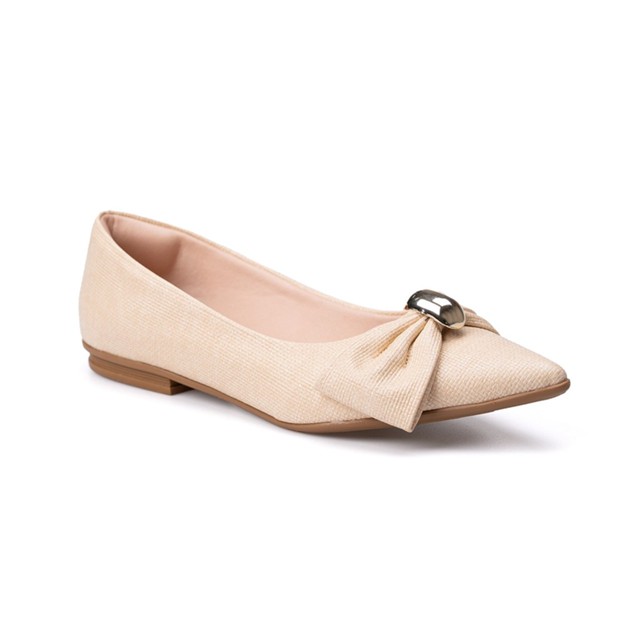 Sapatilha Feminina Bico Fino Laço Delicado Com Pingente Oval Metalizado