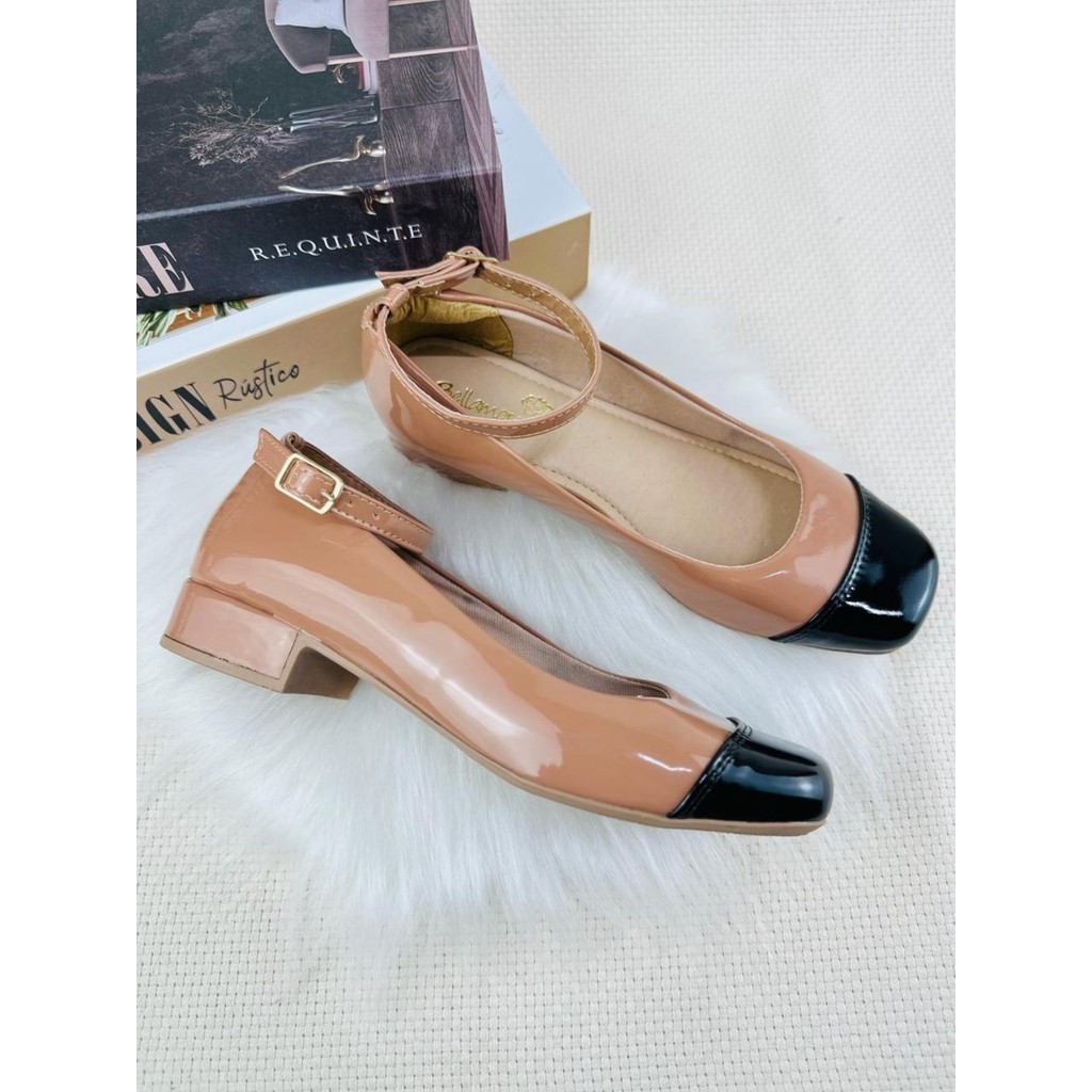Sapatilha Feminina Bico Quadrado Com Salto Baixo Estilo Boneca Retro Tendencia Inverno 2024