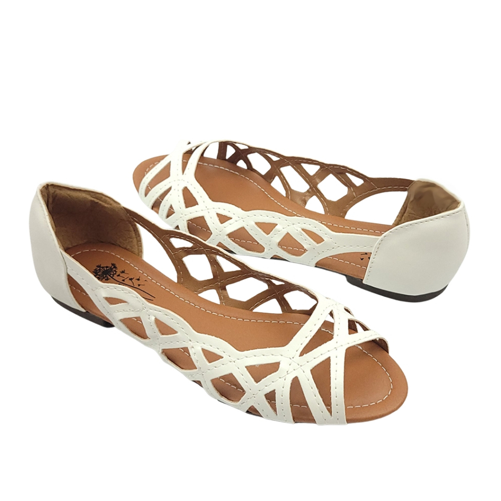 Sapatilha Feminina Branco Vazada Sandália Calcado Mocassim Mulher Moda Menina Sandalia Flat
