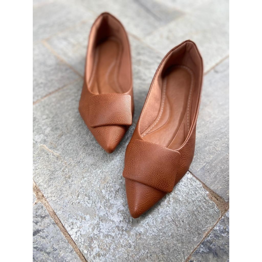 Sapatilha Feminina Caramelo Detalhe Fivela Encapada Palmilha Confort Luxo