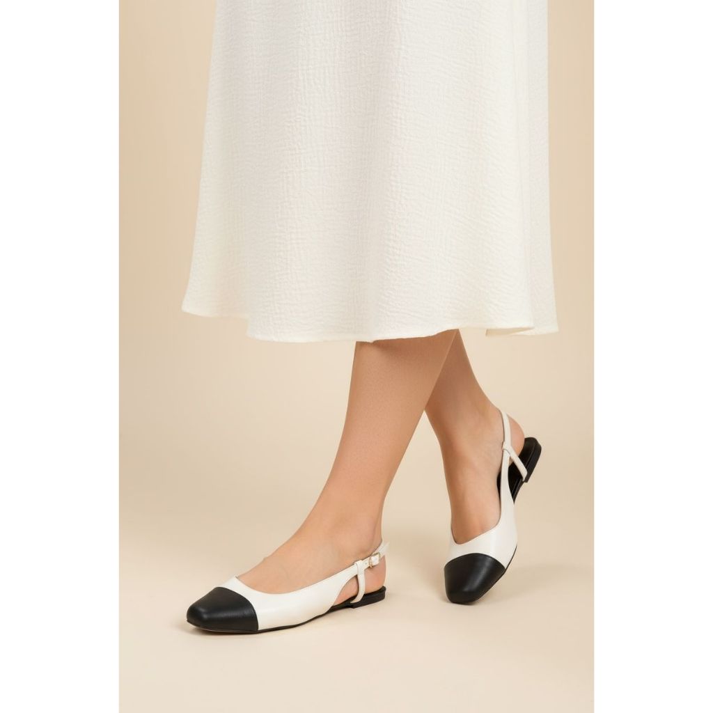 Sapatilha Feminina Confortável Luxo Elegante Sapato Feminino Slingback Mocassim Bico Quadrado Off White