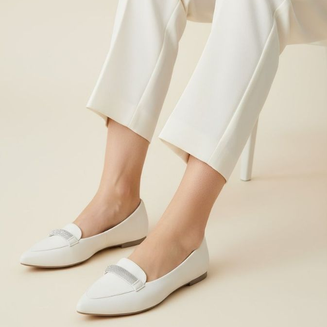 Sapatilha Feminina Confortável Luxo Mocassim Sapato Feminino Bico Fino Ouro Strass