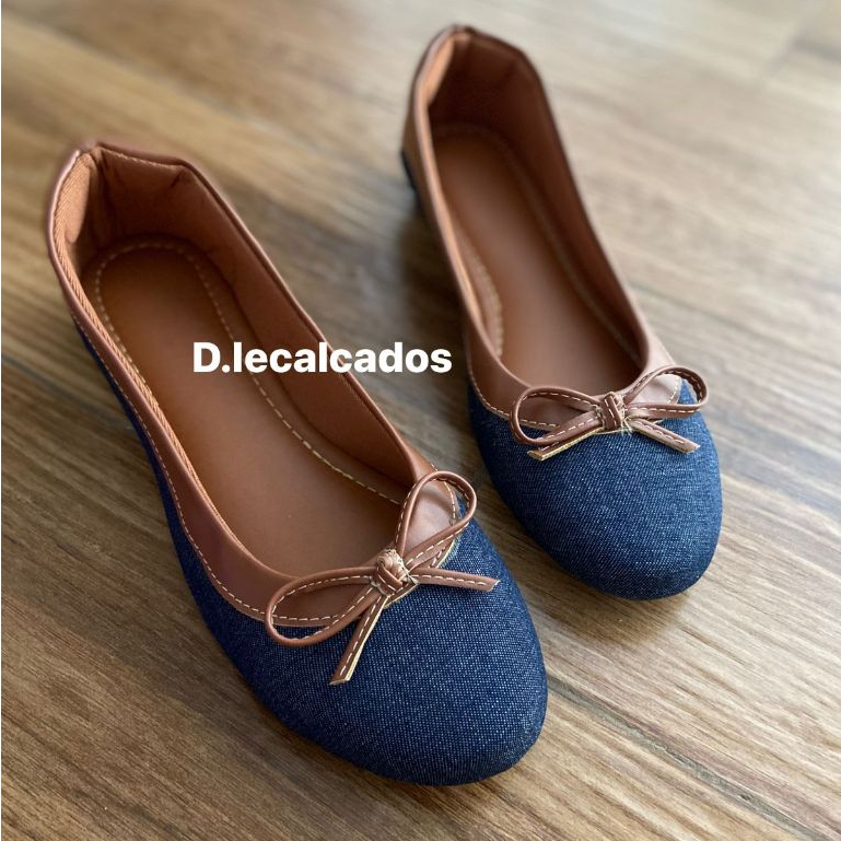 Sapatilha Feminina Jeans Bico Redondo Palmilha Confortável Tamanho Especial