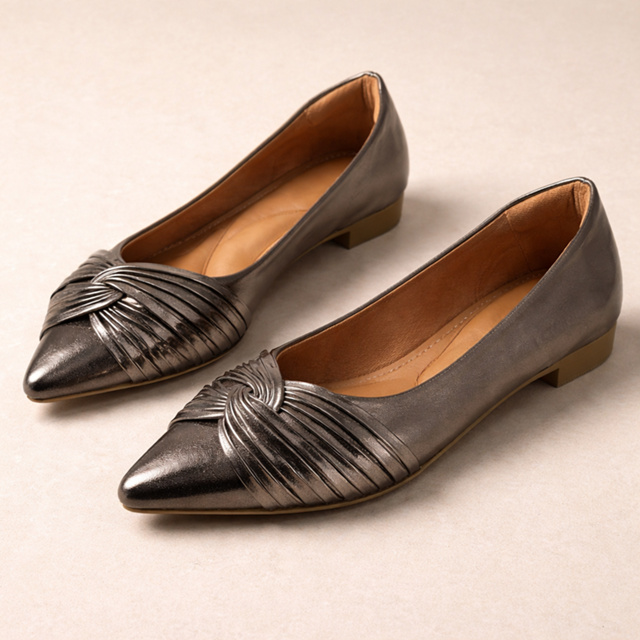 Sapatilha Feminina Napa Chumbo Palmilha Confort Bico Fino 005X