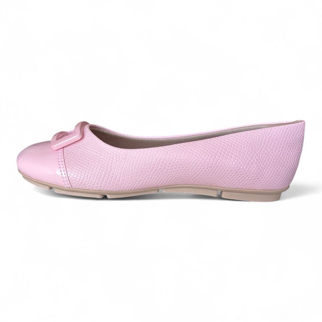 Sapatilha Feminina Rosa Bico Redondo com Textura e Verniz Comfortflex 2463422-2