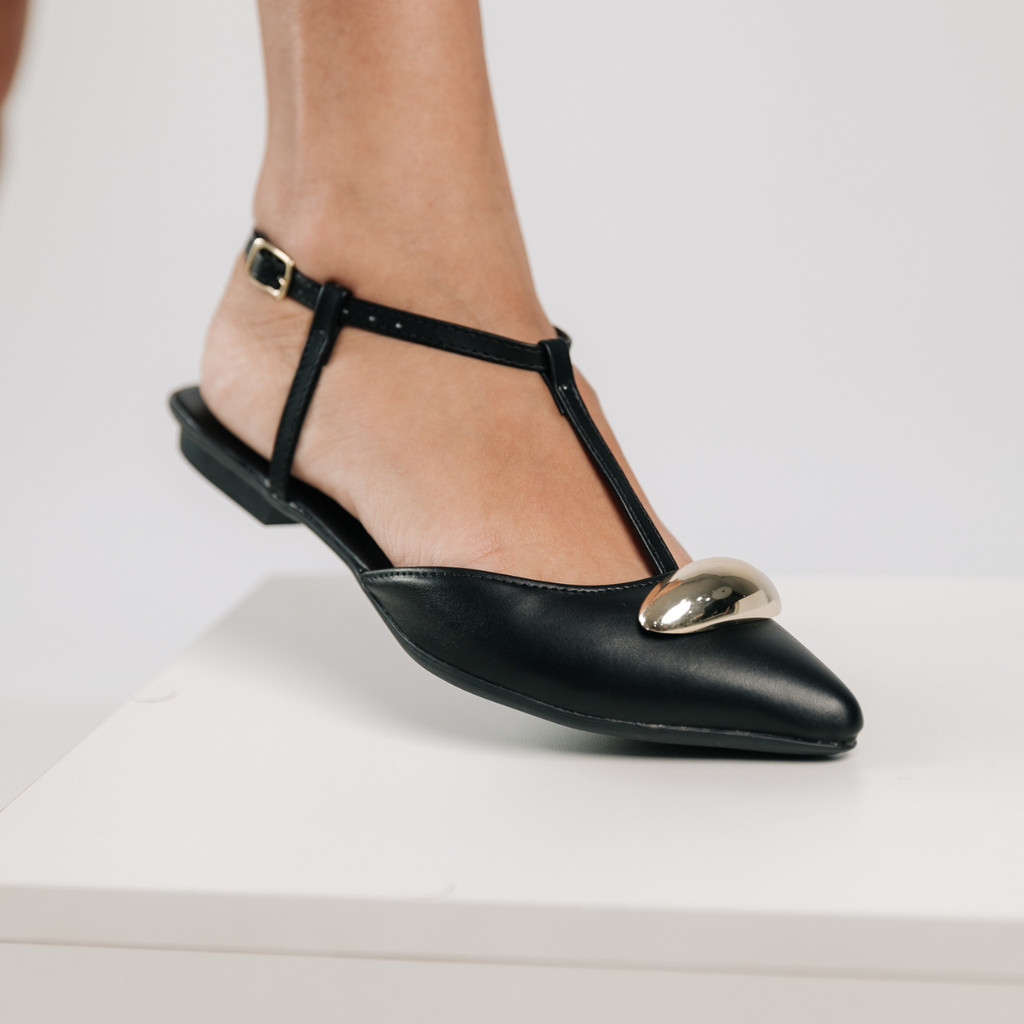 Sapatilha Feminina Salomé Bico Fino Preta Flat aberta Fivela e Amarração