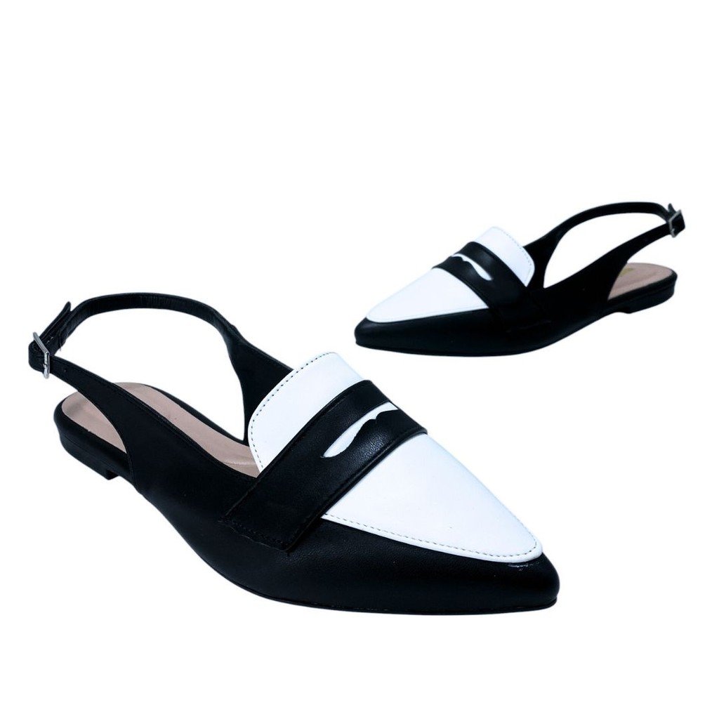 Sapatilha Feminina Sapato Casual Bicolor Bico Fino Com Fivela Confortável Macio 182