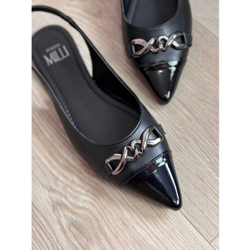 Sapatilha Feminina Slingback Bico Alongado Moderna Preto Renata Milli