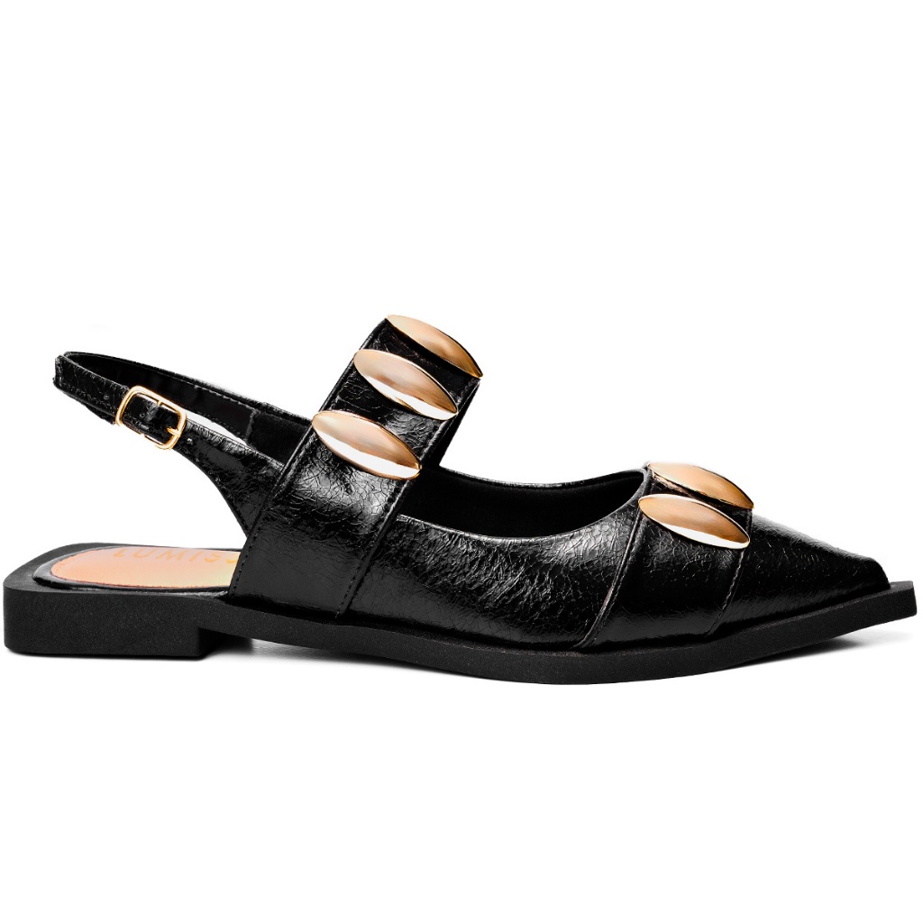 Sapatilha Feminina Slingback Lumiss Tachas Confortável Bico Fino Preto