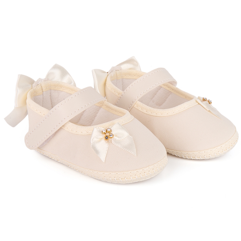 Sapatilha Infantil Bebê Menina Batizado Laço Strass Confortável Passeio Velcro Elegante Festa