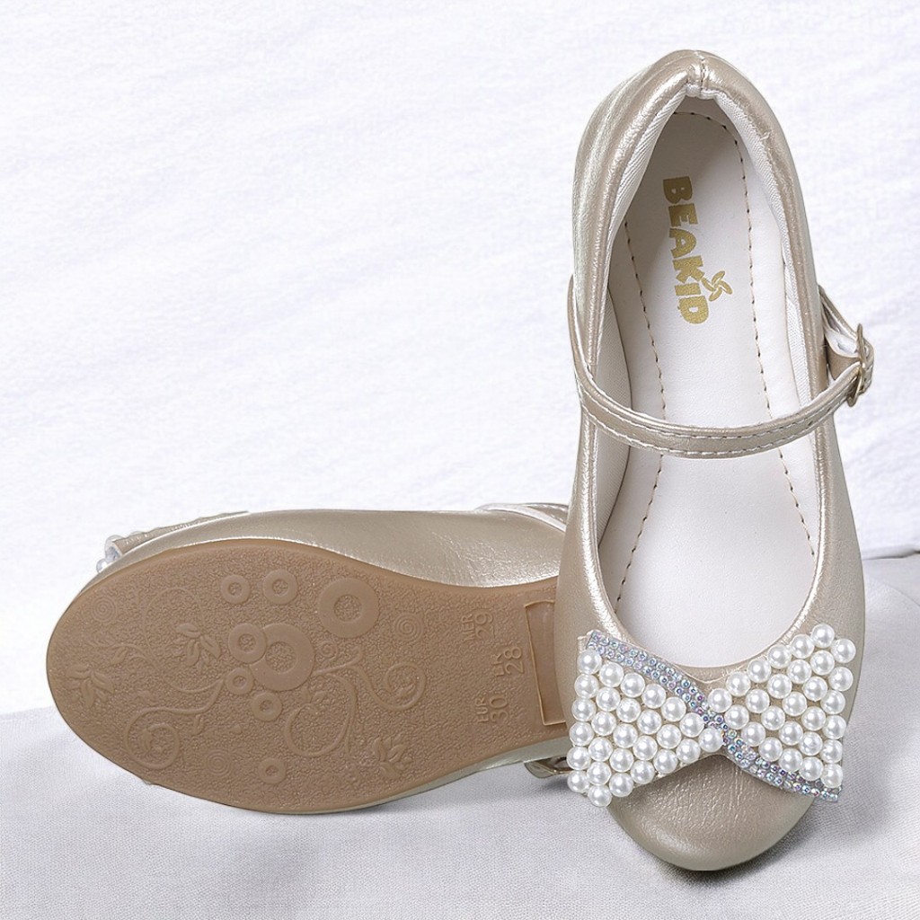 Sapatilha Infantil Feminina Beakid Com Laço em Pérolas e Pedrarias, Palmilha Moldada e Confortável