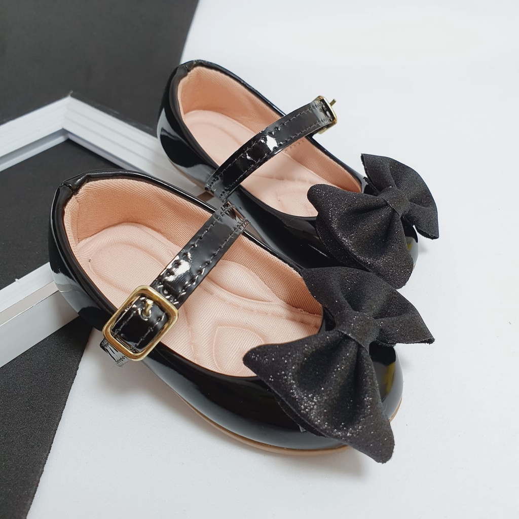 Sapatilha Infantil Feminina Confortável Preta Laço Glitter Ponta 16 ao 34