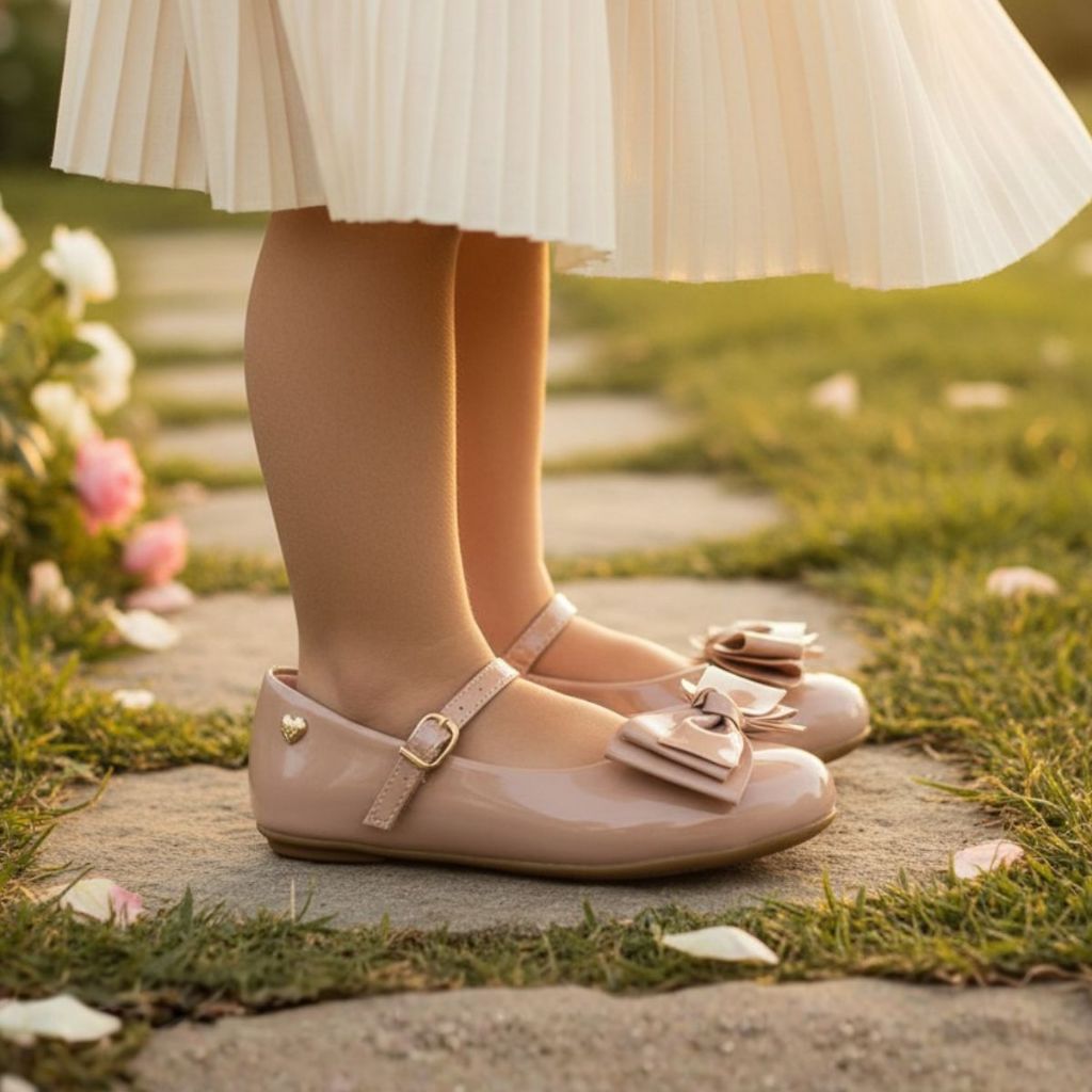 Sapatilha Infantil Feminina Laço Social Sapato Menina Batizado Daminha Confortável Branco Preto Nude