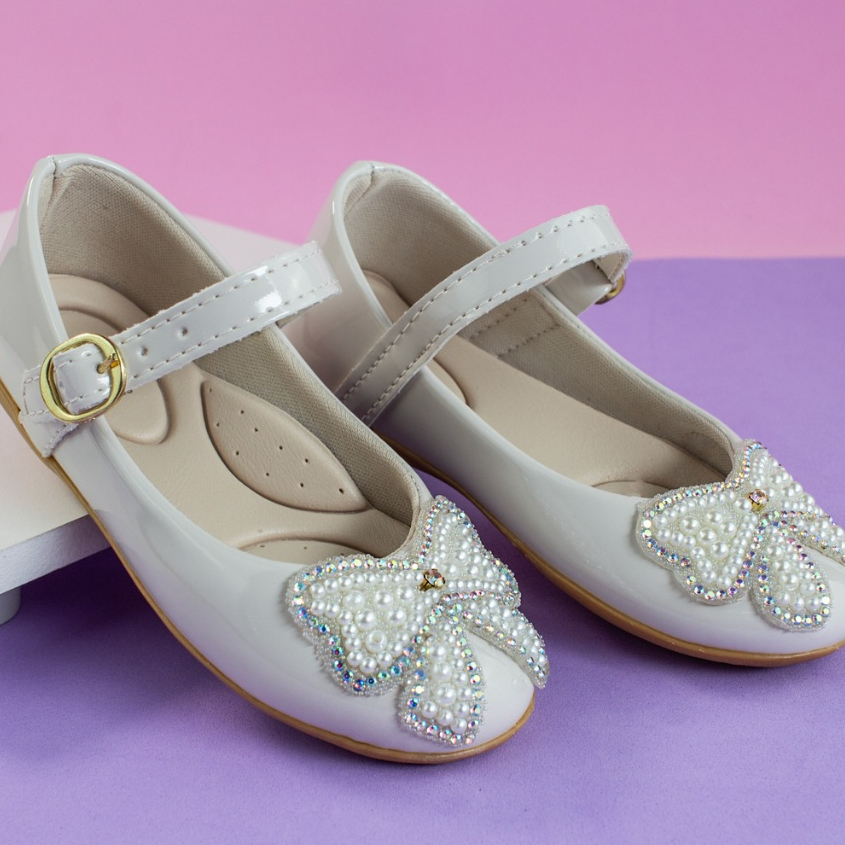 Sapatilha Infantil Laço Off White Menina Confortável Moda Festa 2010 Brilho Delicada Promoção