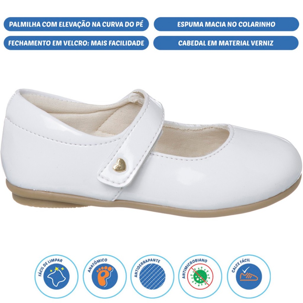 A sapatilha Love é confeccionada em materiais nobres, sendo perfeita para ocasiões especiais e passeios. A espuma no colarinho e a palmilha almofadada permitem que os passinhos das pequenas tenham o máximo de conforto e maciez. Tem ainda um solado antiderrapante que proporciona firmeza e segurança para as meninas aproveitarem de montão. DETALHES DO PRODUTOFechamento: Velcro Material Externo: SintéticoMaterial Interno: TêxtilMaterial da Palmilha: SintéticoMaterial da Sola: Borracha TRCor: Branco Altura do cano: Baixo **********TABELA DE MEDIDAS*********** 20 ------------------ 13,5 cm 21 ------------------ 14,2 cm 22 ------------------ 14,8 cm 23 ------------------ 15,7 cm 24 ------------------ 16,3 cm 25 ------------------ 17,2 cm 26 ------------------ 17,8 cm 27 ------------------ 18,3 cm 28 ------------------ 18,6 cm 29 ------------------ 19,3 cm 30 ------------------ 19,9 cm 31 ------------------ 20,5 cm 32 ------------------ 21,2 cm 33 ------------------ 22,2 cm 34 ------------------ 22,9 cm 35 ------------------ 23,6 cm 36 ------------------ 24,3 cm OBS: À cada medida feita, adicione pelo menos meio centímetro para que o pé fique confortável no calçado. Afinal, nenhum sapato fica exatamente do mesmo tamanho dos pés.