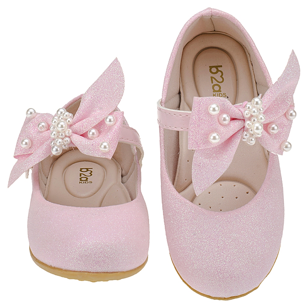 Sapatilha Infantil Menina Brilho Glitter Laço Pérola B2A Festa Delicada Casamento Fim de Ano 2801