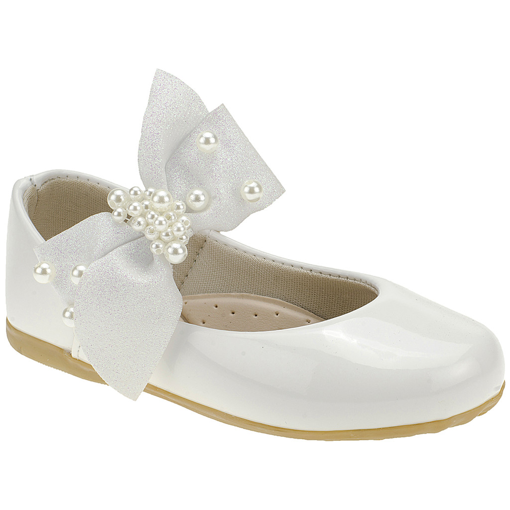 Sapatilha Infantil Menina Delicada Laço de Glitter e Pérolas Delicado Brilho Confortável Casamento 2028