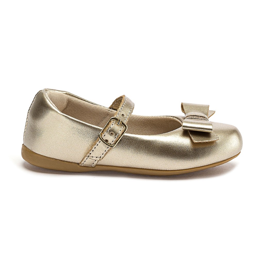 Sapatilha Infantil Menina Dourada Laço com Fivela Tamanho 20 ao 27