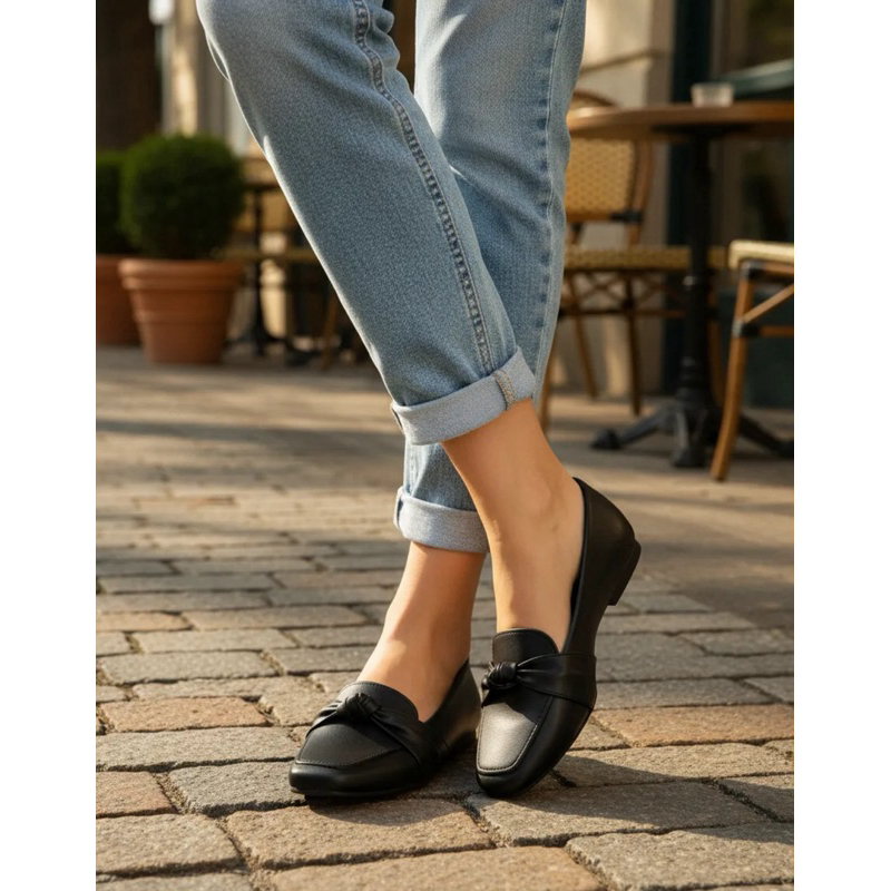 Sapatilha mocassim feminina básica laço nó bico quadrado