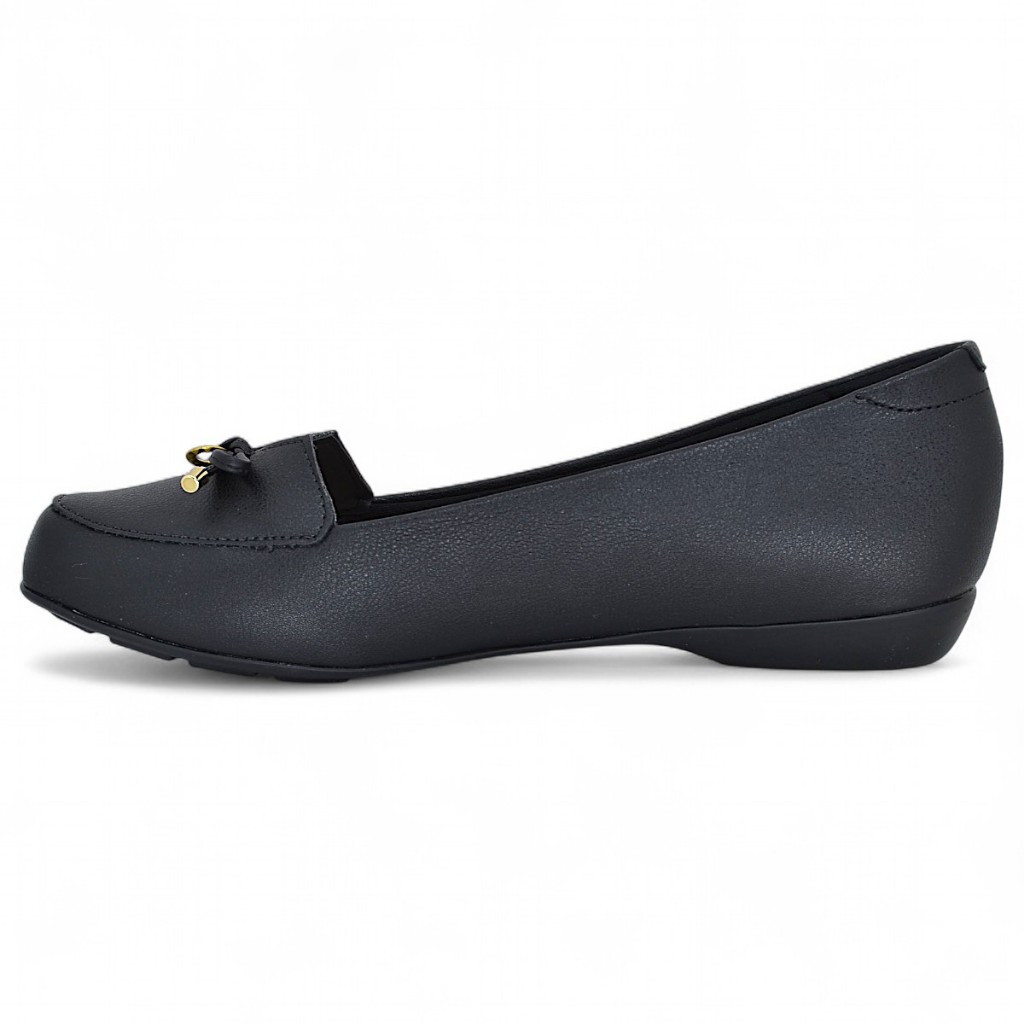 Quando o assunto é unir elegância, conforto e bem-estar em um único calçado, a Sapatilha Modare Ultraconforto se destaca como uma escolha certeira. Ideal para mulheres que priorizam saúde e estilo no dia a dia, esse modelo foi desenvolvido especialmente para oferecer alívio para quem sofre com dores nos pés, inflamações, fascite plantar ou esporão, sem abrir mão de um visual clássico e sofisticado. Confeccionada em material sintético de alta qualidade, essa sapatilha apresenta resistência, durabilidade e um acabamento impecável. A escolha cuidadosa dos materiais garante um toque macio ao calçar e permite um ajuste confortável que acompanha o formato dos pés, promovendo uma experiência de uso agradável ao longo de todo o dia. O design é um dos pontos fortes da peça: clássico, atemporal e minimalista, ela se adapta com facilidade a diversos estilos e ocasiões. O cabedal é valorizado por um laço delicado, enriquecido com adornos metálicos, que adicionam um toque de charme e feminilidade. Para completar, um pin metálico com o logo da marca se destaca na parte lateral do cabedal, reforçando a autenticidade e o cuidado com os detalhes. No quesito conforto, o grande diferencial é sua palmilha anatômica ultramacia, totalmente acolchoada para garantir máximo bem-estar. Desenvolvida para quem precisa de suporte extra, ela possui ainda um reforço de 1 cm de espuma de alta densidade na região do calcanhar, auxiliando no amortecimento e reduzindo o impacto a cada passo. O interior do calçado também é macio e suave ao toque, contribuindo para uma sensação de conforto contínua. O modelo conta com um salto bloco de 1 cm de altura, o que proporciona leve elevação sem comprometer a estabilidade. Esse tipo de salto é ideal para quem precisa de suporte firme, sem abrir mão da leveza e praticidade de uma sapatilha tradicional. Para finalizar, o solado emborrachado com frisos antiderrapantes oferece excelente aderência e estabilidade, mesmo em superfícies escorregadias. Essa característica garante mais segurança ao caminhar, prevenindo escorregões e proporcionando mais confiança em cada passo. TABELA DE MEDIDAS Tamanho 34 - 23,5cm Tamanho 35 - 24,5cm Tamanho 36 - 25cm Tamanho 37 - 25,5cm Tamanho 38 - 26cm Tamanho 39 - 26,5cm Tamanho 40 - 27,5cm