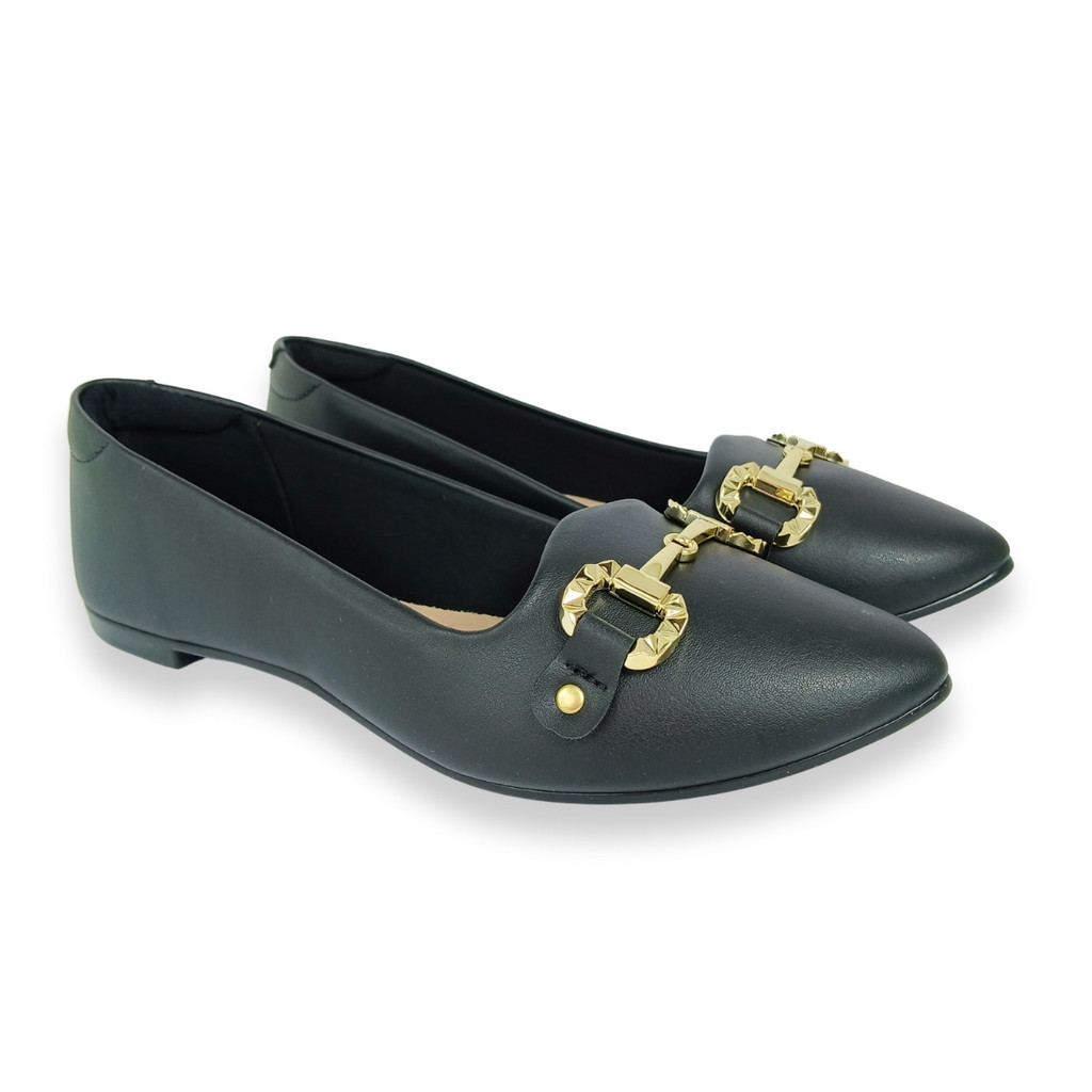 Sapatilha Moleca Feminina Preta Detalhe Dourado Casual