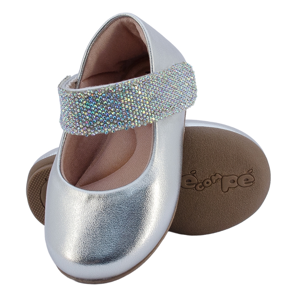 Sapatilha Neném Menina Guty Um toque de brilho e elegância para os momentos especiais da sua pequena! Essa sapatilha infantil em tom prata combina charme e conforto com um design moderno e delicado. O destaque fica por conta da tira de velcro coberta por pedrarias que iluminam o visual com um brilho sutil e encantador. Com interior macio e palmilha acolchoada, o calce é fácil e o caminhar é suave, ideal para festas, eventos ou passeios em família. A praticidade do fechamento em velcro garante autonomia para as crianças e segurança para os pais. Um modelo que transforma qualquer look em algo memorável.