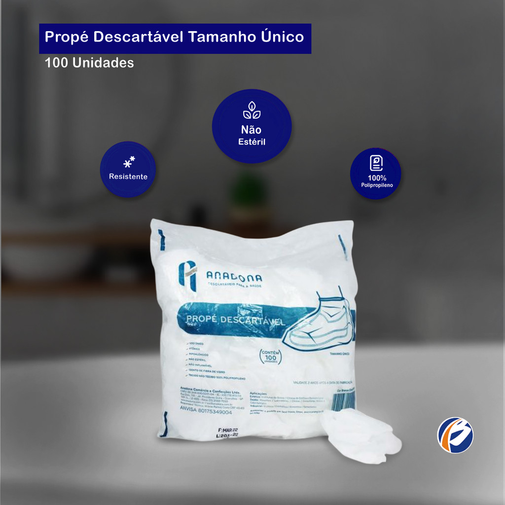 Sapatilha Propé 20g Branca 100 unidades Anadona É um item de proteção descartável, confeccionado em tecido não tecido (TNT) 100% polipropileno atóxico e hipoalergênico. Projetada para cobrir e envolver calçados, possui elástico em toda a borda superior, garantindo melhor fixação e vedação durante o uso. O uso das sapatilhas serve como barreira física, impedindo a propagação de microrganismos, evitando a contaminação do ambiente e do usuário. Indicação de Uso: - Ideal em áreas hospitalares, laboratoriais, industriais, farmacêuticas, químicas e alimentícias, bem como proteção do ambiente de trabalho durante a realização de procedimentos em geral. Cor: Branco Tamanho: Único Medidas: 145mm x 395mm Gramatura: 20g/m² Embalagem: 01 pacote com 100 unidades
