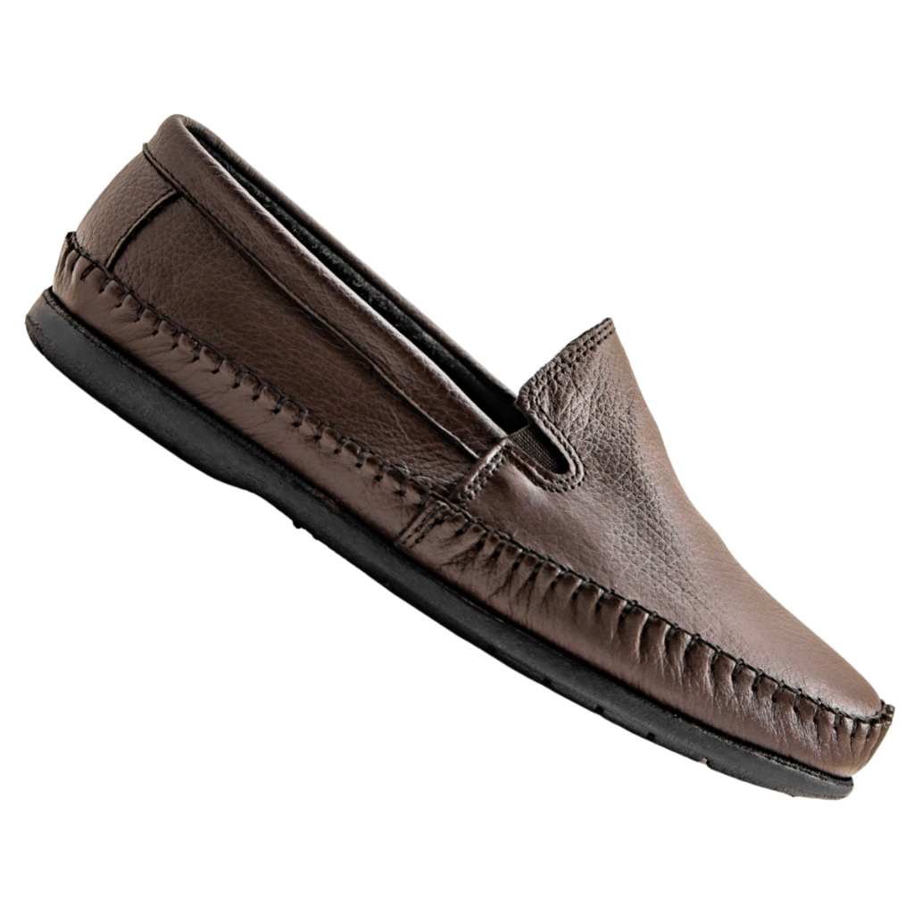 Sapatilha Sapato Mocassim Masculino de Couro Legítimo Confortável Sola de Borracha Costurado