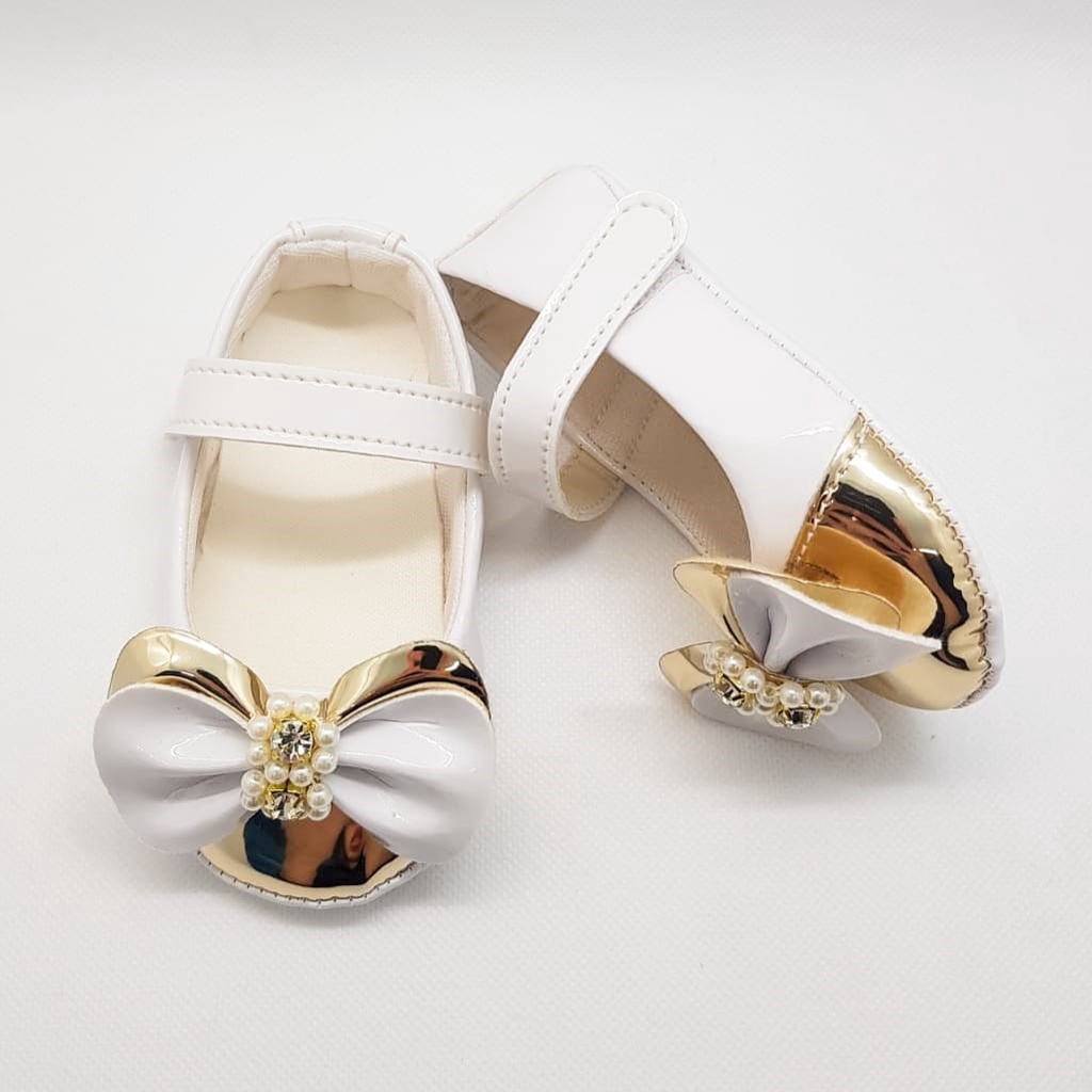 Sapatilha Verniz Baby recém nascido Menina com Bico Metalizado