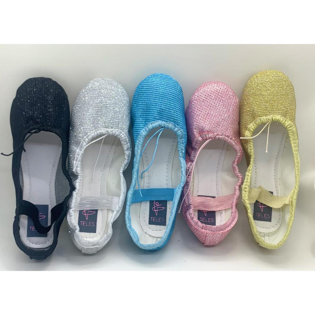 **LEIA A DESCRIÇÂO A RESPEITO DO MATERIAL*** Sapatilhas de Ballet Material: Glitter Modelo: Meia ponta **Obs: Antes de efetuar a compra, certifique-se de que escolheu um numero a mais do que costuma usar em um calçado convencional. Ex: se costuma usar numero 29, terá que comprar uma sapatilha numero 30** **Recomendamos que não alterem o pedido via chat