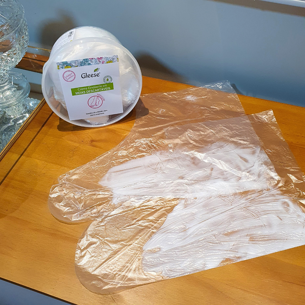 Sapatilhas Descartáveis com Creme Emoliente em pote com 50 unidades - Gleese