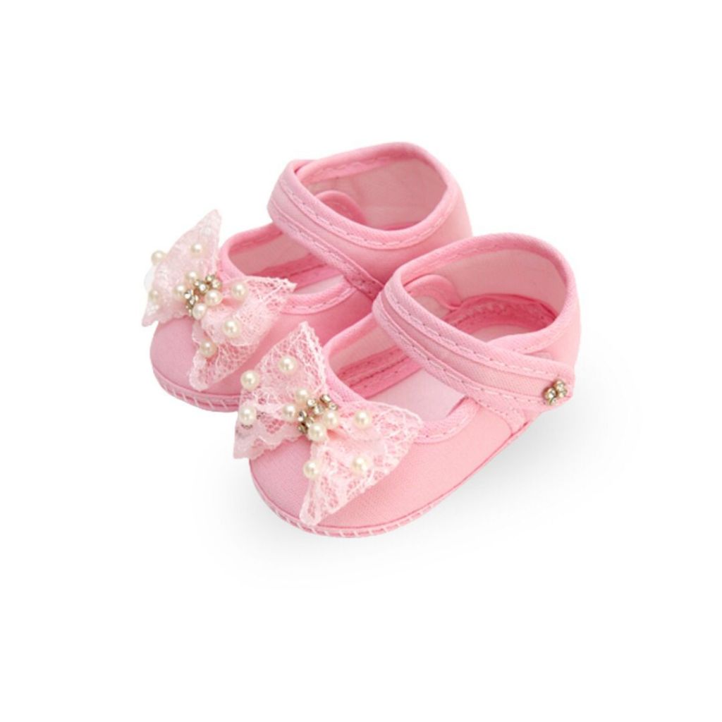 Sapatinho Bebê Kit 4 pares Sapatilha Laço Renda para Recém Nascida de 0 meses ate 8 meses