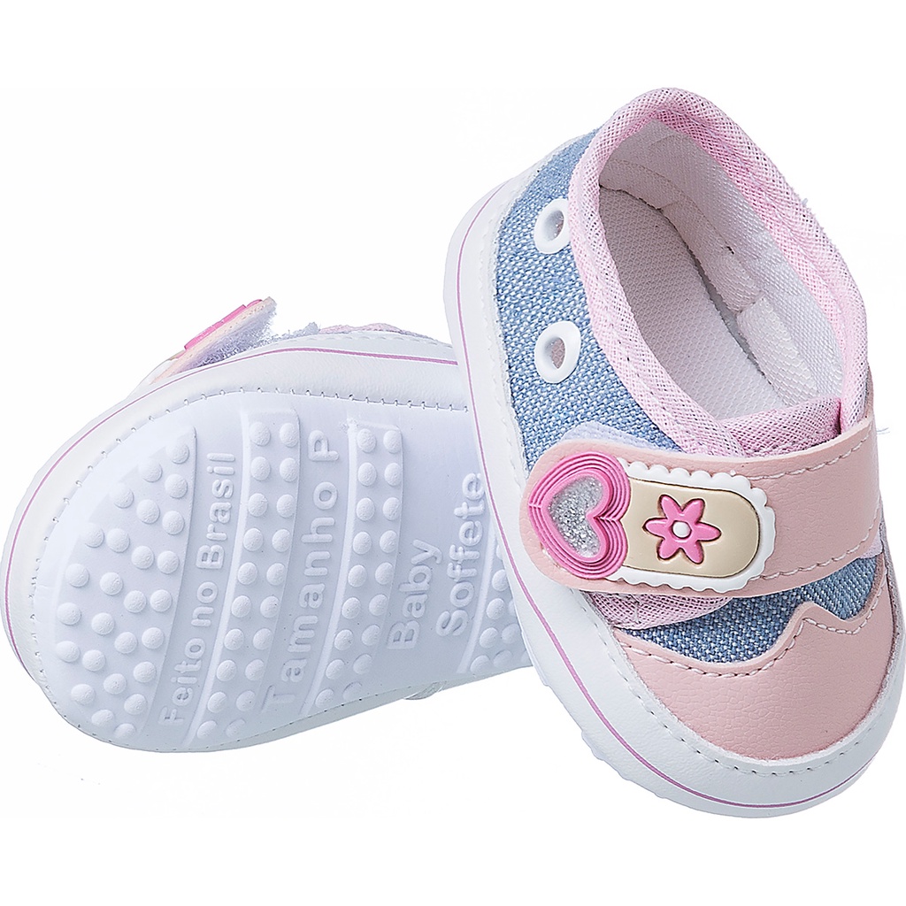 Marca: Baby Soffete. A Marca Baby Soffete é excelência em qualidade e segurança para o Bebê. Seus sapatos são testados e antialérgico. Material usado: Cabeda, Sarja 100% algodão, cordão em algodão, Palmilha Eva 3mm, e enfeite feitos de PVC antialérgicos, sola antiderrapante. Os produtos são novos? Todos os nossos produtos são novos e vão em uma caixinha. Irei receber o mesmo produto da foto? Sim. As fotos são originais do produto. Qual a diferença da compra no Boleto e do Cartão de Crédito para a postagem do produto? Compras no Boleto demora até 48 horas para cair em nosso sistema por motivo da compensação bancária, mas assim que confirmado o pagamento será postado. Compras no Cartão de crédito caem em nosso sistema no prazo máximo de 2 horas. Assim o produto é postado mais rápido.